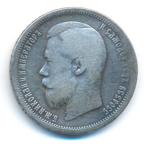 Лицевая сторона — портрет Николая II в круговой надписи «Б.М. НИКОЛАЙ II ИМПЕРАТОРЪ И САМОДЕРЖЕЦЪ ВСЕРОСС», оборотная — двуглавый орел, обозначение номинала (50 копеекъ) и дата.