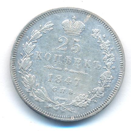 Лицевая сторона — новый гербовый орел с поднятыми крыльями и надпись «ЧИСТОГО СЕРЕБРА 1 ЗОЛОТНИКЪ 5 ДОЛЕЙ», оборотная —обозначение номинала (25 копеекъ), окруженное венком из лавровой и дубовой ветвей и дата.
