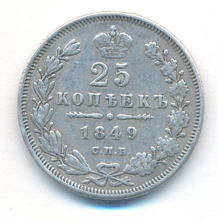 Лицевая сторона — новый гербовый орел с поднятыми крыльями и надпись «ЧИСТОГО СЕРЕБРА 1 ЗОЛОТНИКЪ 5 ДОЛЕЙ», оборотная —обозначение номинала (25 копеекъ), окруженное венком из лавровой и дубовой ветвей и дата.