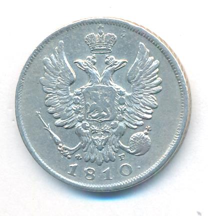Манифест от 29 августа 1810 года устанавливает для разменной серебряной монеты (20, 10 и 5 копеек) ту же стопу, что и для банковой, но из серебра 72/96 пробы. Следующий за ним указ от 21 августа 1813 года, сохраняя стопу, приводит разменную монету в ту же 88,3/96 пробу, что и у банковой монеты. Выделяют два типа орла.