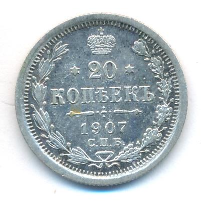 Лицевая сторона — гербовый орел, оборотная —обозначение номинала (20 копеекъ), окруженное венком из лавровой и дубовой ветвей и дата.