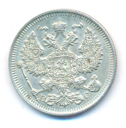 Лицевая сторона — гербовый орел, оборотная —обозначение номинала (20 копеекъ), окруженное венком из лавровой и дубовой ветвей и дата.
