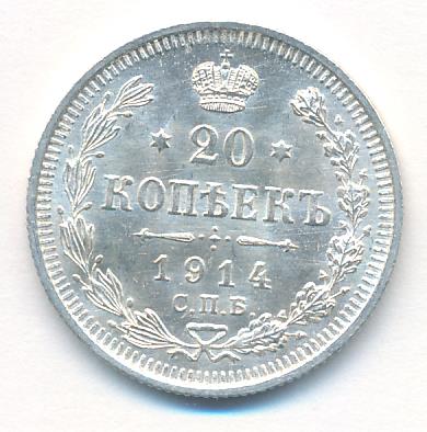 Лицевая сторона — гербовый орел, оборотная —обозначение номинала (20 копеекъ), окруженное венком из лавровой и дубовой ветвей и дата.