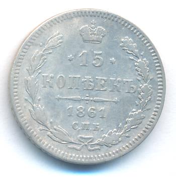 В 1861 году из-за перегруженности Петербургского двора заказы на чеканку части 20, 15 и 10 копеек размещаются на Парижском и Страсбургском монетных дворах. На этих монетах тот же знак двора СПБ, но отсутствует знак минцмейстера.
