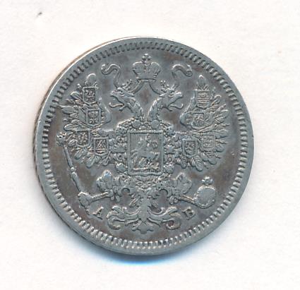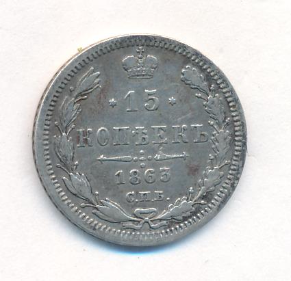 Лицевая сторона — гербовый орел, оборотная —обозначение номинала (15 копеекъ), окруженное венком из лавровой и дубовой ветвей и дата.