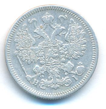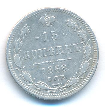 Лицевая сторона — гербовый орел, оборотная —обозначение номинала (15 копеекъ), окруженное венком из лавровой и дубовой ветвей и дата.