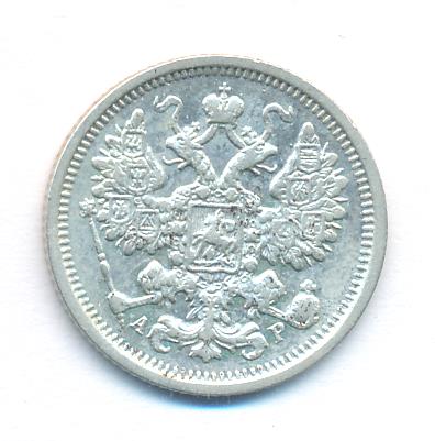 Лицевая сторона — гербовый орел, оборотная —обозначение номинала (15 копеекъ), окруженное венком из лавровой и дубовой ветвей и дата.