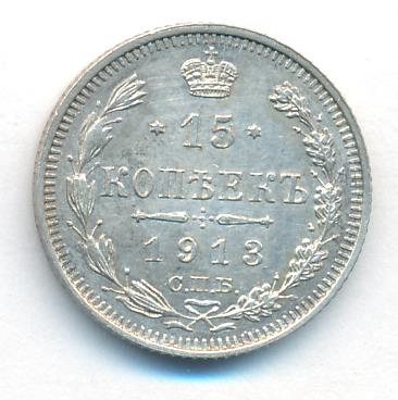 Лицевая сторона — гербовый орел, оборотная —обозначение номинала (15 копеекъ), окруженное венком из лавровой и дубовой ветвей и дата.