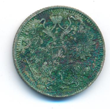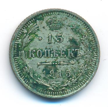 Лицевая сторона — гербовый орел, оборотная —обозначение номинала (15 копеекъ), окруженное венком из лавровой и дубовой ветвей и дата.