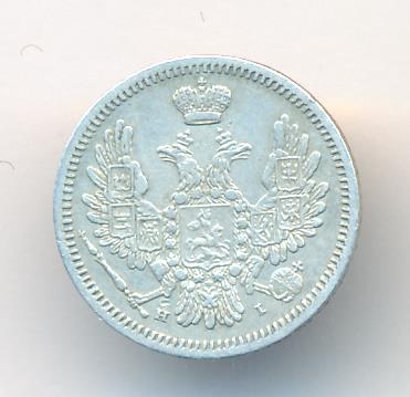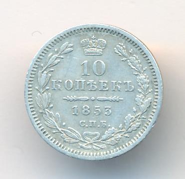 Лицевая сторона — новый гербовый орел с поднятыми крыльями, оборотная —обозначение номинала (10 копеекъ), окруженное венком из лавровой и дубовой ветвей и дата. Проба — 868, нормативный вес — 2,07 грамма.