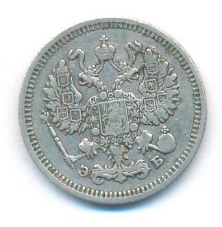 Лицевая сторона — гербовый орел, оборотная —обозначение номинала (10 копеекъ), окруженное венком из лавровой и дубовой ветвей и дата.