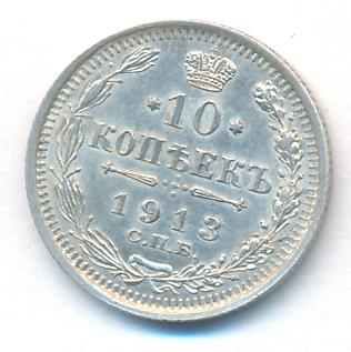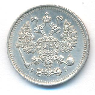 Лицевая сторона — гербовый орел, оборотная —обозначение номинала (10 копеекъ), окруженное венком из лавровой и дубовой ветвей и дата.