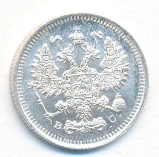 Лицевая сторона — гербовый орел, оборотная —обозначение номинала (10 копеекъ), окруженное венком из лавровой и дубовой ветвей и дата.