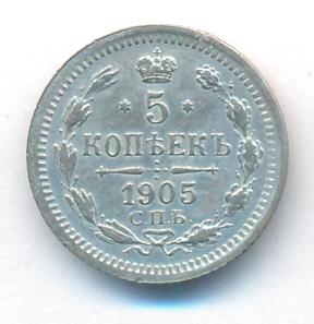 Лицевая сторона — гербовый орел, оборотная —обозначение номинала (5 копеекъ), окруженное венком из лавровой и дубовой ветвей и дата.