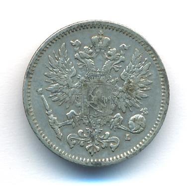 Лицевая сторона — российский двуглавый орел с гербом Великого княжества Финляндского на груди, оборотная — номинал и дата в венке из дубовых листьев. Проба — 750, нормативный вес — 2,55 грамма, гурт рубчатый.