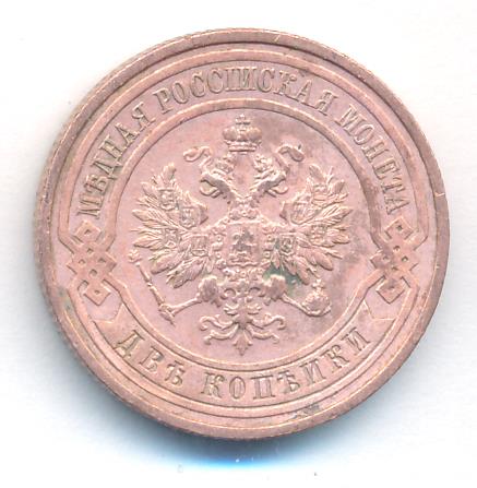 Лицевая сторона — двуглавый орел, надпись МЕДНАЯ РОССIЙСКАЯ МОНЕТА и обозначение номинала (две копейки); оборотная — обозначение номинала (2 копейки) в бусовом ободке и дата. Нормативный вес — 6,55 грамма, гурт рубчатый.