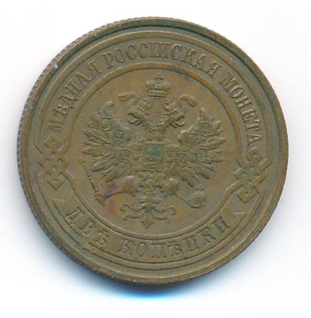 Лицевая сторона — двуглавый орел, надпись МЕДНАЯ РОССIЙСКАЯ МОНЕТА и обозначение номинала (две копейки); оборотная — обозначение номинала (2 копейки) в бусовом ободке и дата. Нормативный вес — 6,55 грамма, гурт рубчатый.