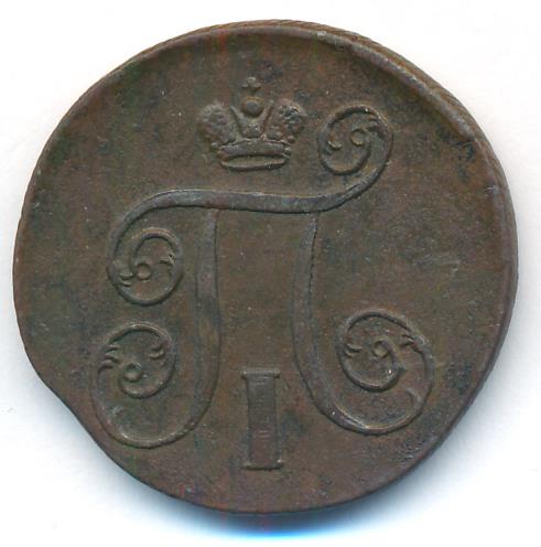 Лицевая сторона — вензель Павла I под короной, оборотная — номинал (1 копейка) и дата. Нормативный вес — 10,24 грамма, гурт — шнур.