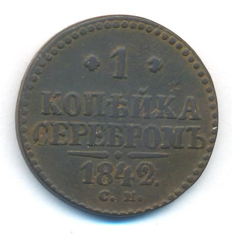 Лицевая сторона — вензель Николая I в бусовом ободке, оборотная — надпись «1 КОПЕЙКА СЕРЕБРОМ» и дата. Нормативный вес — 10,24 грамма, гурт гладкий.