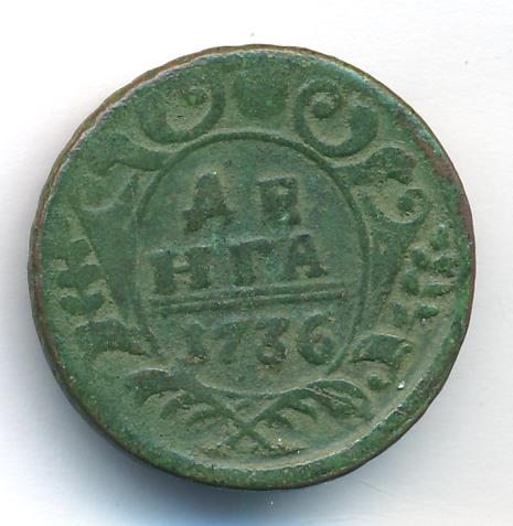 С 1730 года, как и 30 лет назад, медь возвращает себе статус разменных долей серебряной копейки — печатаются только денги и полушки. Указ от 22 декабря 1730 года регламентирует их выпуск на 10 рублей из пуда меди. Петровские копейки 20-рублевой стопы перечеканиваются в денги, а копейки Петра II 40-рублевой стопы — в полушки.