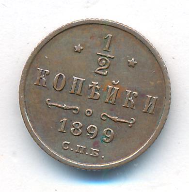 Лицевая сторона — вензель Александра II в венке из лавровой и дубовой ветвей; оборотная — обозначение номинала (1/2 копейки) и дата. Нормативный вес — 1,64 грамма, гурт рубчатый.