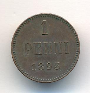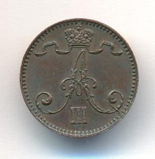 Лицевая сторона — вензель Александра II, оборотная — номинал (1 PENNIA) и дата. Нормативный вес — 1,28 грамма, гурт гладкий.