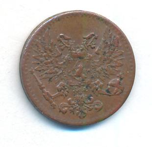 Лицевая сторона — вензель Александра II, оборотная — номинал (1 PENNIA) и дата. Нормативный вес — 1,28 грамма, гурт гладкий.