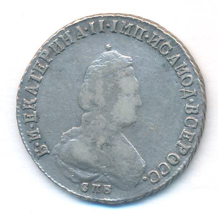 Выделяют два типа - «шея длиннее» и «шея короче». Лицевая сторона — портрет императрицы и надпись «Б М ЕКАТЕРИНА II IМП И САМОД ВСЕРОСС», оборотная — двуглавый орел и надпись «ПОЛУПОЛТИННИКЪ» и дата. Проба — 750, нормативный вес — 5,97 грамма, гурт — шнур.