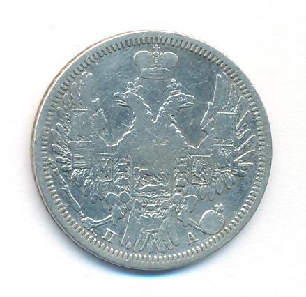 Лицевая сторона — новый гербовый орел с поднятыми крыльями, оборотная —обозначение номинала (20 копеекъ), окруженное венком из лавровой и дубовой ветвей и дата. Проба — 868, нормативный вес — 4,15 грамма.