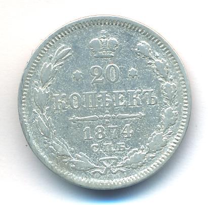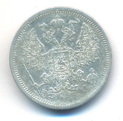 Лицевая сторона — гербовый орел, оборотная —обозначение номинала (20 копеекъ), окруженное венком из лавровой и дубовой ветвей и дата.