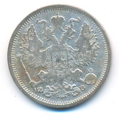 Лицевая сторона — гербовый орел, оборотная —обозначение номинала (20 копеекъ), окруженное венком из лавровой и дубовой ветвей и дата.