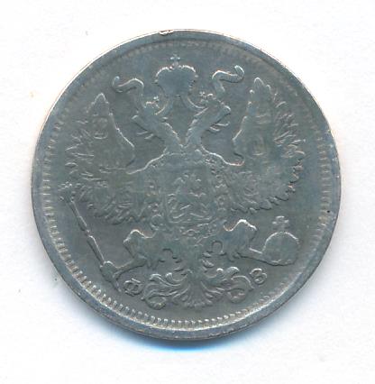 Лицевая сторона — гербовый орел, оборотная —обозначение номинала (20 копеекъ), окруженное венком из лавровой и дубовой ветвей и дата.
