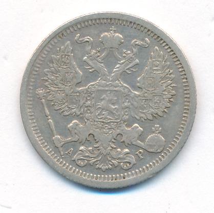 Лицевая сторона — гербовый орел, оборотная —обозначение номинала (20 копеекъ), окруженное венком из лавровой и дубовой ветвей и дата.