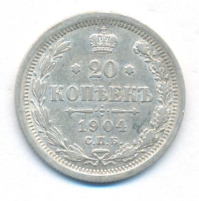Лицевая сторона — гербовый орел, оборотная —обозначение номинала (20 копеекъ), окруженное венком из лавровой и дубовой ветвей и дата.