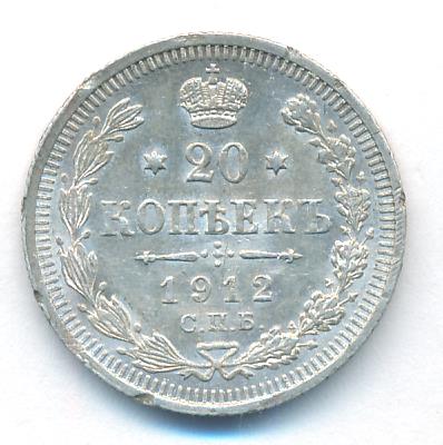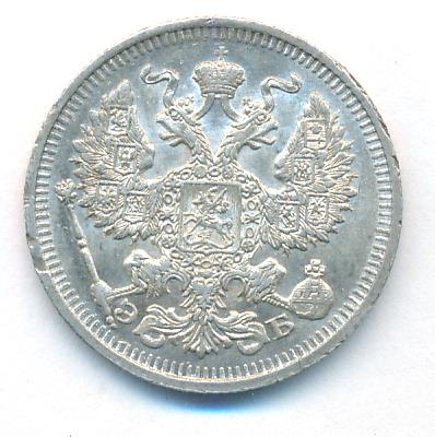 Лицевая сторона — гербовый орел, оборотная —обозначение номинала (20 копеекъ), окруженное венком из лавровой и дубовой ветвей и дата.