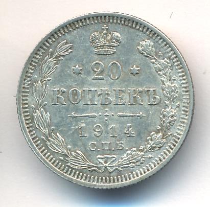 Лицевая сторона — гербовый орел, оборотная —обозначение номинала (20 копеекъ), окруженное венком из лавровой и дубовой ветвей и дата.