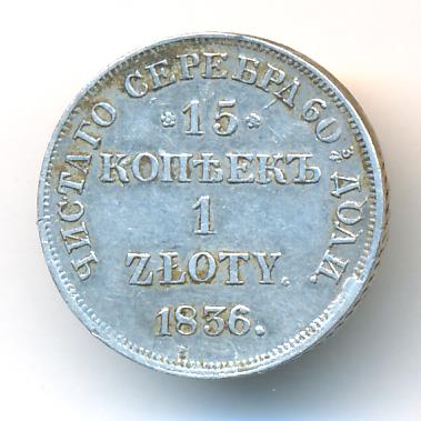 Указом от 15 октября 1832 года «для удобства торговых сношений» Николай I добавляет в ряд серебряных монет новый номинал — 15 копеек, соответствующий одному польскому злотому. Указом от 1 мая 1834 года разрешается чеканка всех номиналов Варшавскому двору. Для организации штемпельного производства из Петербурга 19 июня того же года высылаются рисунки, четыре пары штемпелей и четыре образцовых монеты.