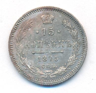 Лицевая сторона — гербовый орел, оборотная —обозначение номинала (15 копеекъ), окруженное венком из лавровой и дубовой ветвей и дата.