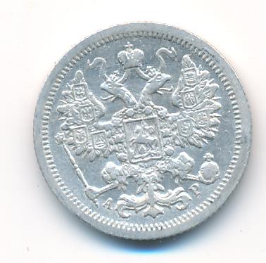 Лицевая сторона — гербовый орел, оборотная —обозначение номинала (15 копеекъ), окруженное венком из лавровой и дубовой ветвей и дата.