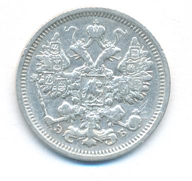 Лицевая сторона — гербовый орел, оборотная —обозначение номинала (15 копеекъ), окруженное венком из лавровой и дубовой ветвей и дата.