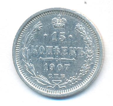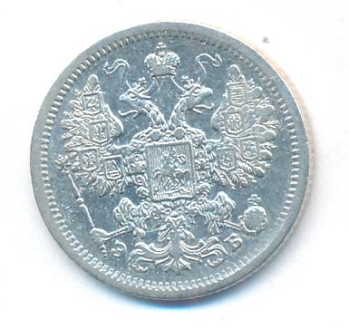 Лицевая сторона — гербовый орел, оборотная —обозначение номинала (15 копеекъ), окруженное венком из лавровой и дубовой ветвей и дата.