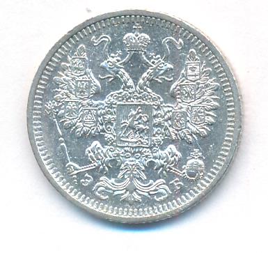 Лицевая сторона — гербовый орел, оборотная —обозначение номинала (15 копеекъ), окруженное венком из лавровой и дубовой ветвей и дата.