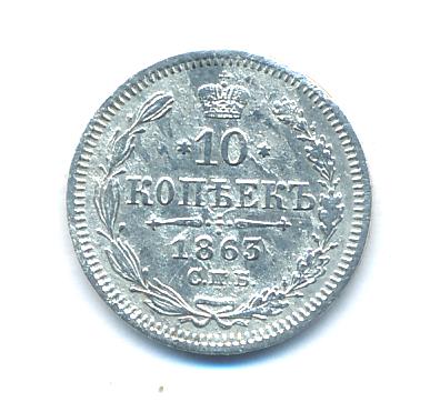 Лицевая сторона — гербовый орел, оборотная —обозначение номинала (10 копеекъ), окруженное венком из лавровой и дубовой ветвей и дата.