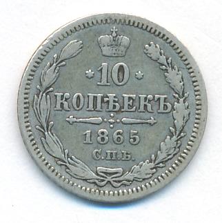 Лицевая сторона — гербовый орел, оборотная —обозначение номинала (10 копеекъ), окруженное венком из лавровой и дубовой ветвей и дата.