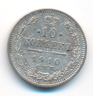 Лицевая сторона — гербовый орел, оборотная —обозначение номинала (10 копеекъ), окруженное венком из лавровой и дубовой ветвей и дата.