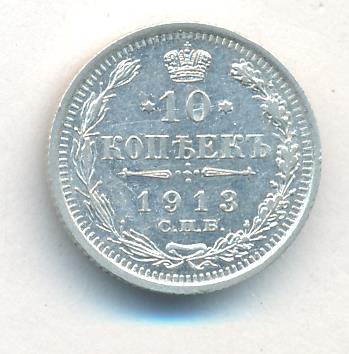 Лицевая сторона — гербовый орел, оборотная —обозначение номинала (10 копеекъ), окруженное венком из лавровой и дубовой ветвей и дата.