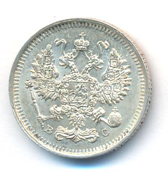 Лицевая сторона — гербовый орел, оборотная —обозначение номинала (10 копеекъ), окруженное венком из лавровой и дубовой ветвей и дата.