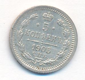 Лицевая сторона — гербовый орел, оборотная —обозначение номинала (5 копеекъ), окруженное венком из лавровой и дубовой ветвей и дата.