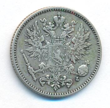 Лицевая сторона — российский двуглавый орел с гербом Великого княжества Финляндского на груди, оборотная — номинал и дата в венке из дубовых листьев. Проба — 750, нормативный вес — 2,55 грамма, гурт рубчатый.