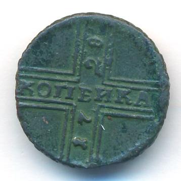 Петр II указом от 21 февраля 1728 года добавляет к полушке и пятаку 40-рублевой стопы копейку и устанавливает для нее сходное с пятаком оформление.